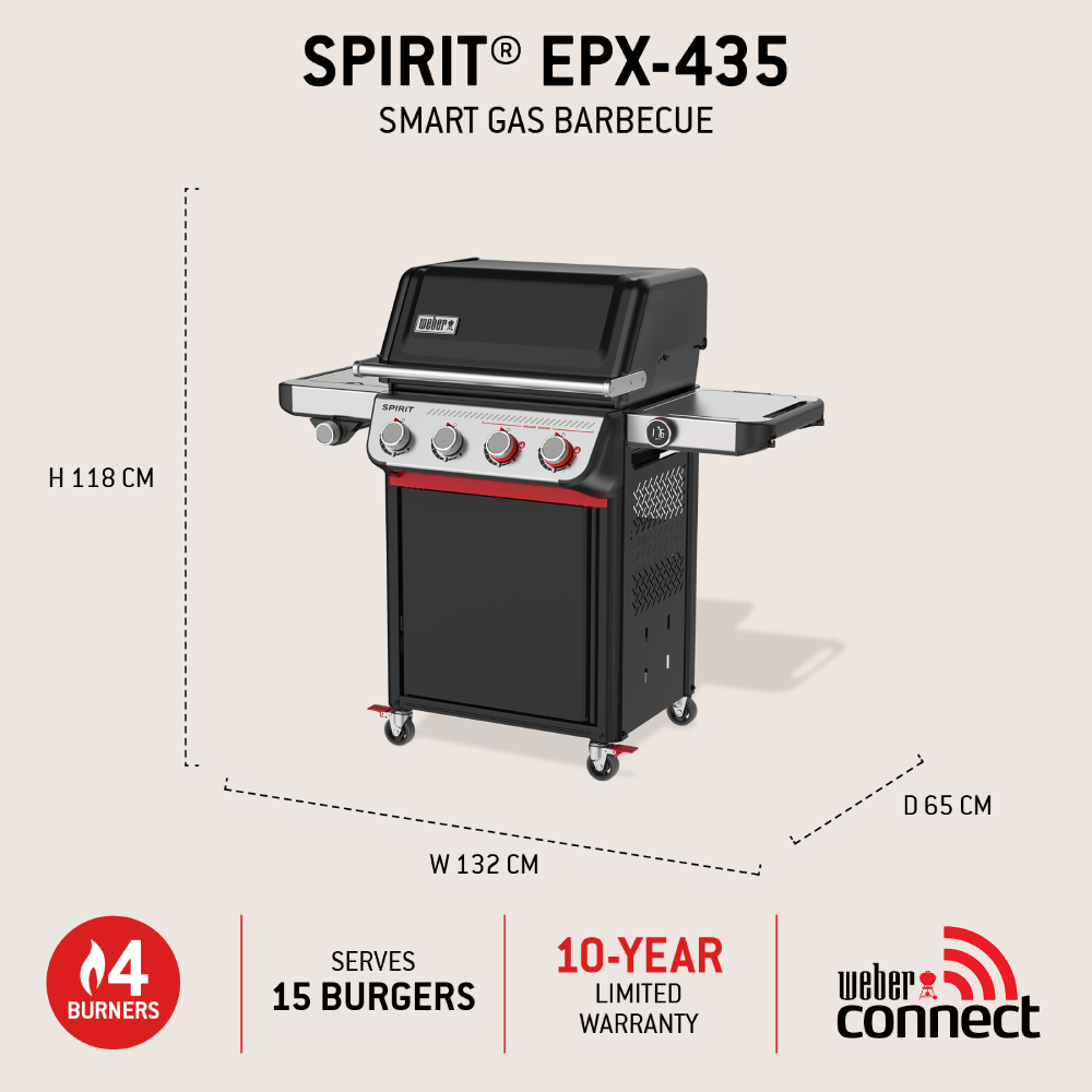 The Weber Spirit EPX-435 is one of the larger members of the 2026 Weber Spirit series, making it the perfect choice for anyone short on space but still wanting a premium barbecue experience, with the most features. As Weber's entry-level gas BBQ series, the Spirit Range delivers exceptional value without compromising on features, ensuring the ultimate grilling performance.