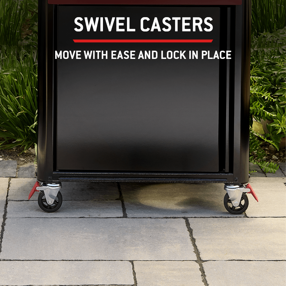 The closed-cart design adds convenience, providing storage space for the gas bottle, while the side tables keep plates and condiments within easy reach. You can also hang essential tools on the integrated hooks for quick access. The Weber Works side rails, built into the side tables, allow you to clip on a variety of optional Weber accessories to elevate your grilling experience further, and the Weber Works Side Table gives you additional storage and preparation options for a truly sophisticated BBQ cooking area.