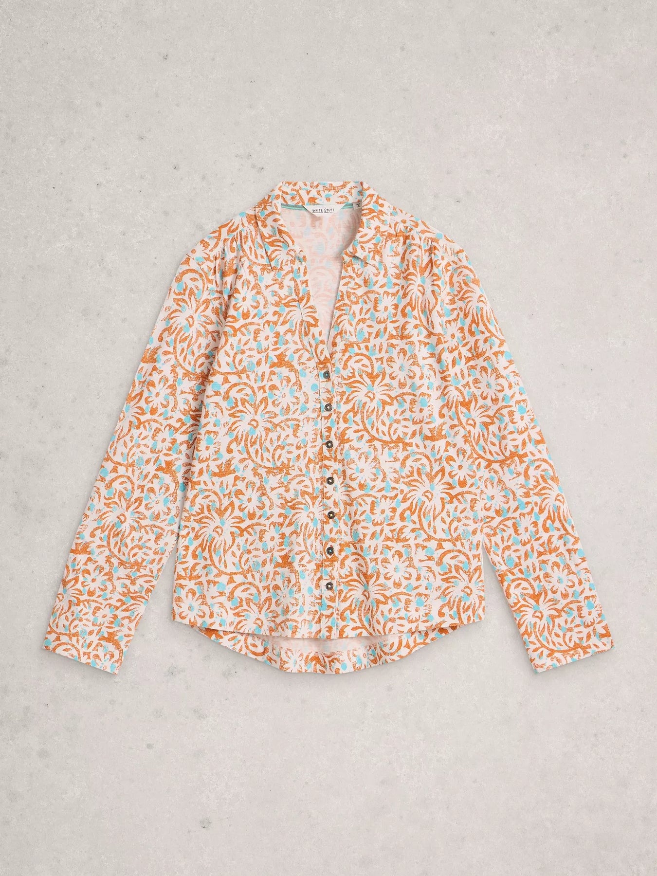 ANNIE JERSEY COLLARED MID LENGH SHIRT in IVORY PRINT